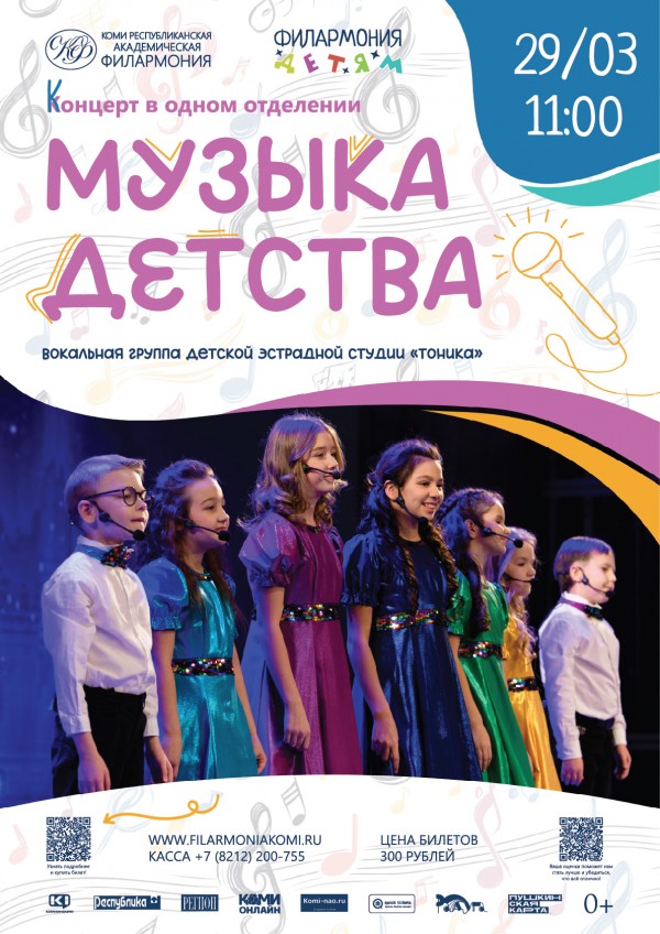 Вокальная группа Детской эстрадной студии "Тоника" представит свою сольную программу. В исполнении юных воспитанников прозвучат песни Владимира Шаинского, Владимира Дашкевича, Геннадия Гладкова, Евгения Крылатова и др. Также в программе прозвучит песня "Тоника", написанная артисткой Государственного ансамбля "Асъя кыа" Владленой Алексеевой.
